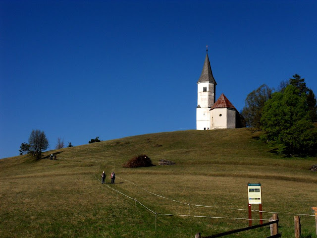 Podružnično cerkev so najverjetneje postavili po letu 1545 in jo kasneje dopolnjevali. Trava je še vsa rjava, iz nje pa kukajo cvetovi žanjevca (kokoške in petelinčki), modre kroglice mračice in bahavi cvetovi velikega encijana - Clusijevega svišča.