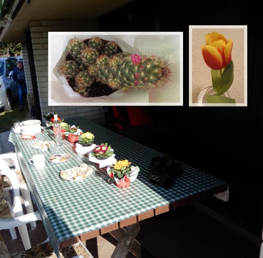 V žarkem soncu se kaže praznična miza: različni priboljški v trdi in tekoči obliki, zraven pa marjetice v lončkih in pisani tulipani za ženske, za moške - mučenike kaktusi značilnih oblik (med trnjem je cvetje!),